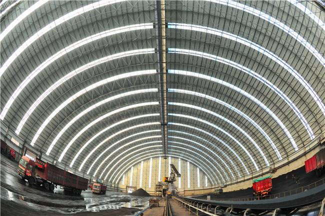 堆场料场封闭式主体结构为新型的钢广汉网架结构,维修结构为广汉钢结构广汉不锈钢板和纤维增强塑料灯具,其外形以广汉网架式和平板为主,连接柱广汉施工自由,设置喷雾自动喷水系统,从而可以实现棚内所有物料的覆盖,减少物料在运输过程中的损耗,起到防尘的作用,减少工厂关闭后的二氧化硫排放量,50mg/m3颗粒排放量小于10mg/m3,非常适合低能耗。低闭库自动感应反应对库存轮胎进行清洁,确保轮胎不受道路污染;封闭的储存区可从源头控制粉尘污染,控制无序排放。